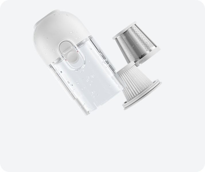 Xiaomi Mi VACUUM CLEANER MINI je majhen ročni sesalnik velikosti steklenice za vodo, priročen v domu, avtomobilu ali pisarni. Teža je le 0,5 kg in je enostaven za upravljanje in vzdrževanje. HEPA filter zajame do 99,97% delcev. V paketu sta priložena dva nastavka, en ozek in en s ščetko. Li-ionska baterija ima vzdržljivost do 30 min, polnjenje sesalnika je preko USB-C, prostornina rezervoarja za umazanijo je velikosti 0,1 l, izpraznite pa ga z enim gumbom.