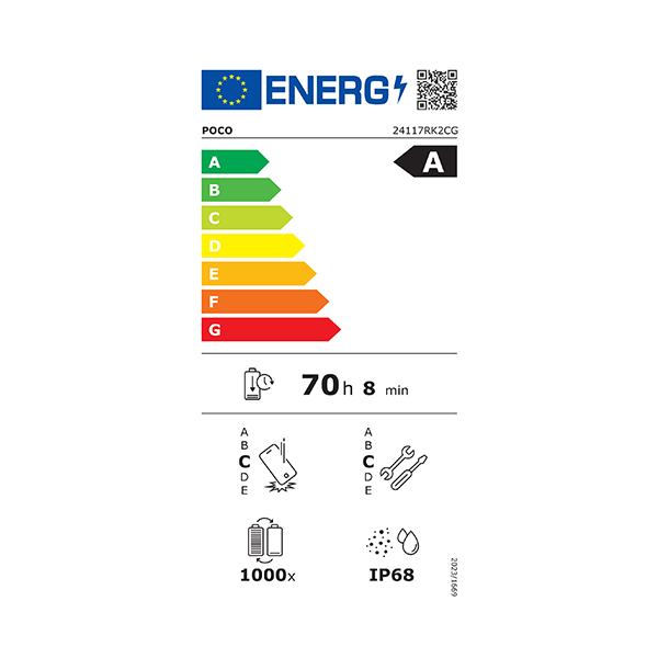 Z novo 6000 mAh baterijo in izboljšano energijsko gostoto (+10,5 %) omogoča POCO F7 Pro izjemno avtonomijo. 90W HyperCharge tehnologija napolni baterijo do 100 % v samo 37 minutah (z izbirnim polnilcem). Po 1600 ciklih baterija ohrani vsaj 80 % zmogljivosti, kar pomeni dolgotrajno zanesljivost.