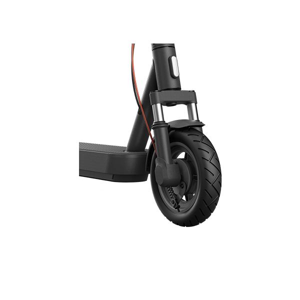 Xiaomi Electric Scooter 5 Pro električni skiro je opremljen z dvojnimi sprednjimi vzmetmi, kar učinkovito absorbira udarce s tal za gladko vožnjo na različnih podlagah. 10-palčne 60 mm široke pnevmatike brez zračnic zagotavljajo izjemno absorpcijo tresljajev, močan oprijem pri zavijanju in varno stabilnost na cesti.