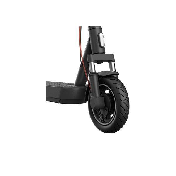 Xiaomi Electric Scooter 5 Pro električni skiro je opremljen z dvojnimi sprednjimi vzmetmi in eno zadnjo vzmetjo, kar učinkovito absorbira udarce s tal za gladko vožnjo na različnih podlagah. 10-palčne 60 mm široke pnevmatike brez zračnic zagotavljajo izjemno absorpcijo tresljajev, močan oprijem pri zavijanju in varno stabilnost na cesti.