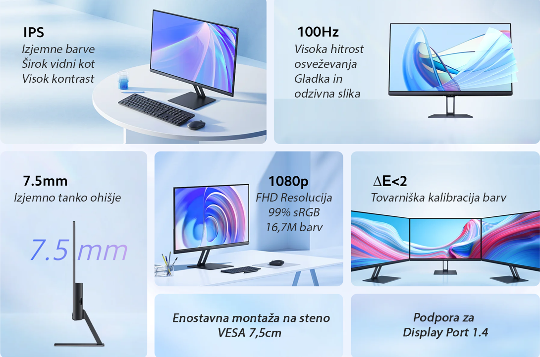 Xiaomi A24i je osupljiv monitor prvega razreda, ki je popoln za pisarno. Z visoko osveževalno hitrostjo 100 Hz zagotavlja gladke in stabilne slike ter izjemno zmogljivost.