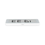 Z dimenzijami 110 × 55 × 10,1 mm in težo le 57 g je naprava izjemno kompaktna. V paketu so priloženi stojalo, nosilec za steno in fleksibilni magnet, kar omogoča namestitev na mizo, steno ali hladilnik. Elegantna bela zasnova iz materialov ABS in PC se prilega vsakemu prostoru.