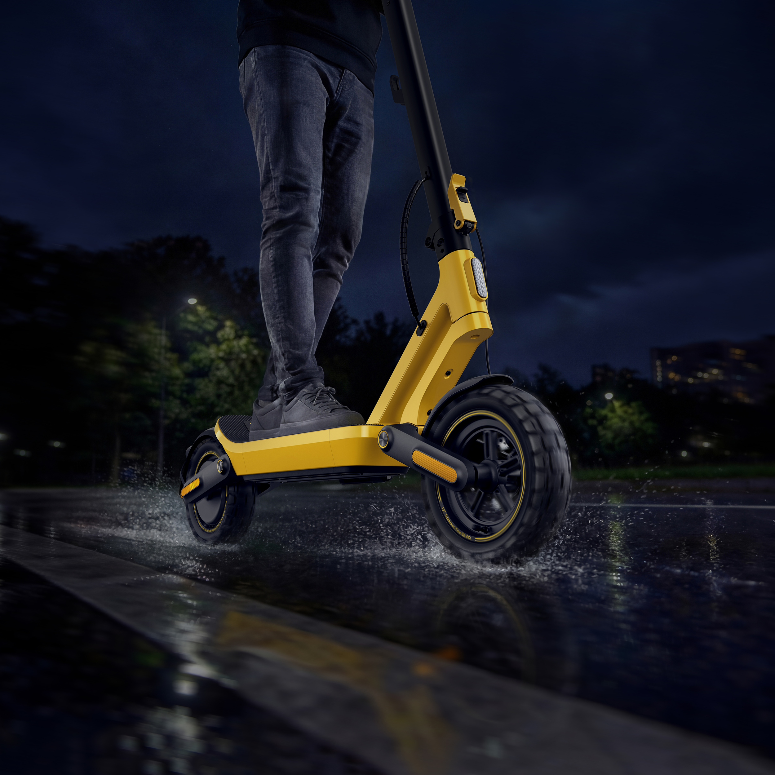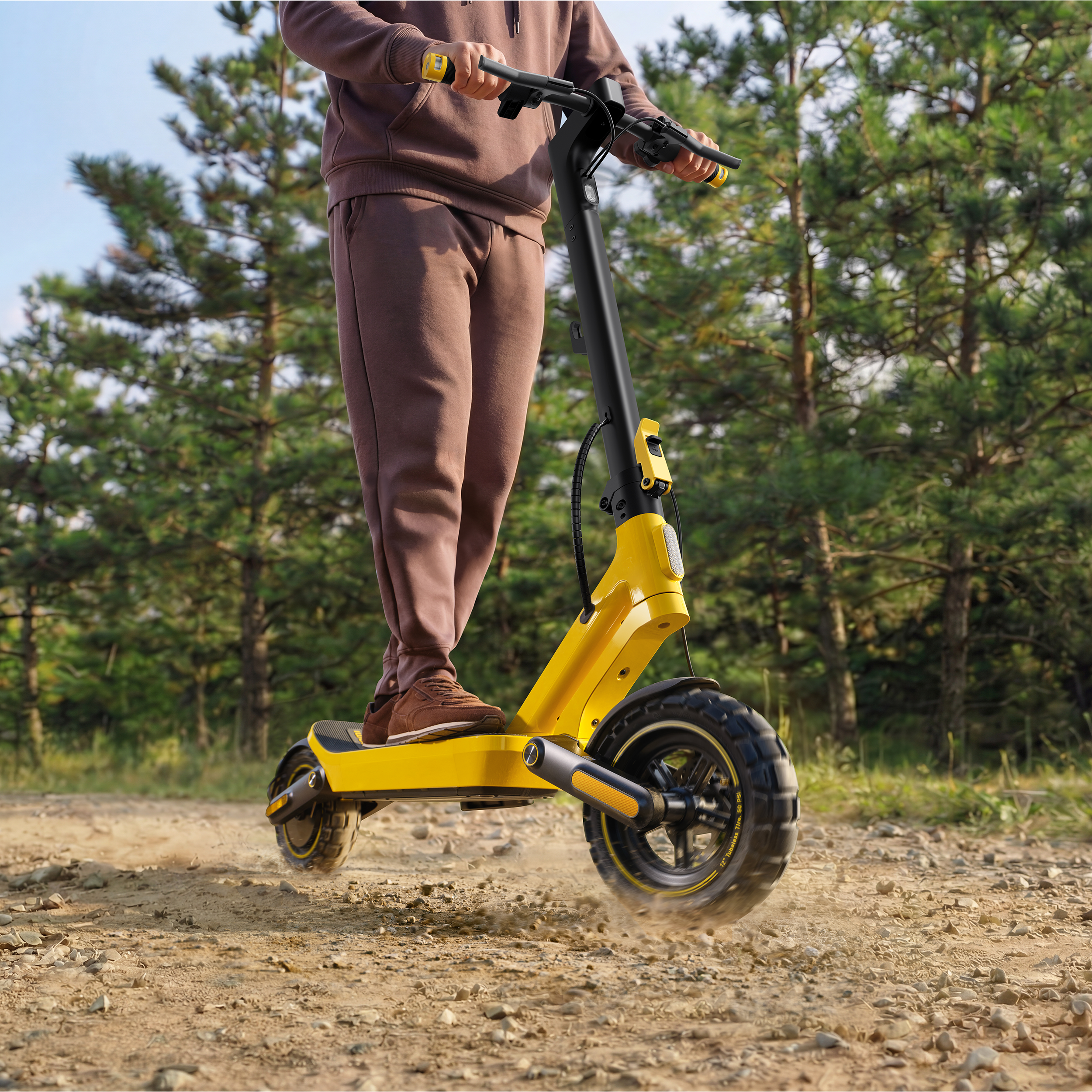 Velike 12-palčne pnevmatike širine 3 palce so zasnovane za vožnjo po različnih podlagah. Nizek kotalni upor in robustna konstrukcija omogočata stabilno vožnjo po luknjastih cestah, tlakovcih, kamnitih ploščah ali grobem asfaltu. Takšna zasnova izboljša oprijem, stabilnost in splošno udobje med vožnjo.