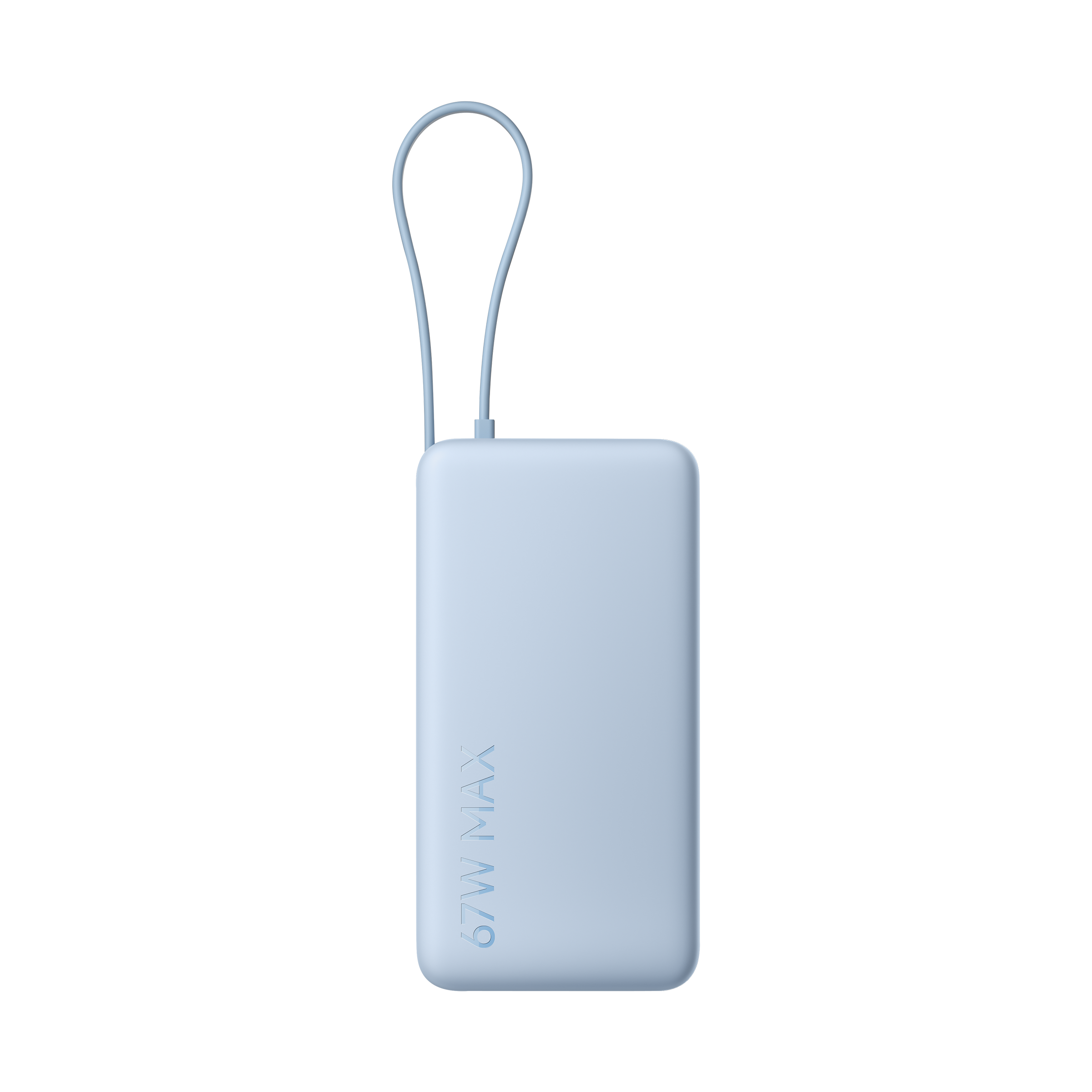 Power bank podpira do 67 W izhodne moči prek vgrajenega USB-C kabla, kar omogoča izjemno hitro polnjenje naprav – na primer Xiaomi 15 doseže 67 % napolnitve v 30 minutah. Baterija se napolni z do 65 W vhodne moči prek istega kabla ali dodatnega USB-C vhoda v približno 2,5 ure.