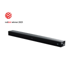 Soundbar se ponaša z klasičnim kovinskim ohišjem in satasto mrežo, ki združuje estetiko in funkcionalnost. Prejel je Red Dot Design Award 2025, kar potrjuje njegov vrhunski dizajn.