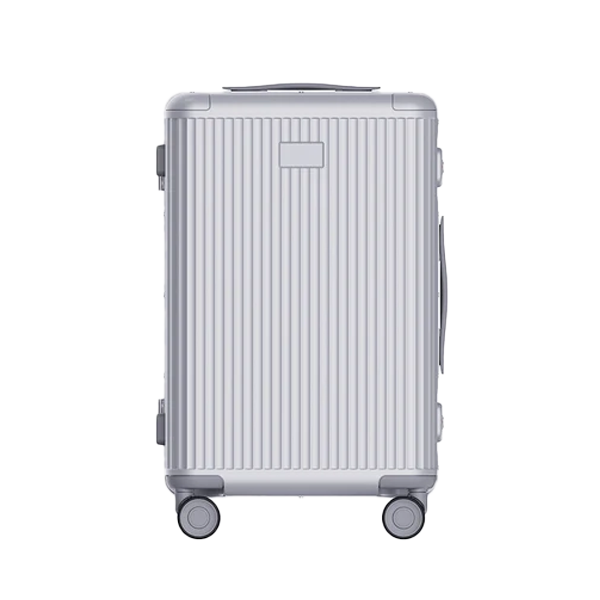 Potovalni kovček Xiaomi Aluminum Frame Luggage izstopa s prenovljenim klasičnim rebrastim dizajnom, ki vključuje kovinsko prašno prevleko. Ko se svetloba odbija od njegove površine, tekstura kovčka ustvarja osupljiv vizualni učinek, zaradi česar je pravi paša za oči.