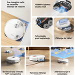 Zmogljiva baterija s kapaciteto 5200 mAh omogoča čiščenje površine do 180 m² z enim ciklom. Robot ima 430 ml zbiralnik za prah in 310 ml rezervoar za vodo, kar omogoča daljše neprekinjeno čiščenje brez pogostega praznjenja ali dolivanja.