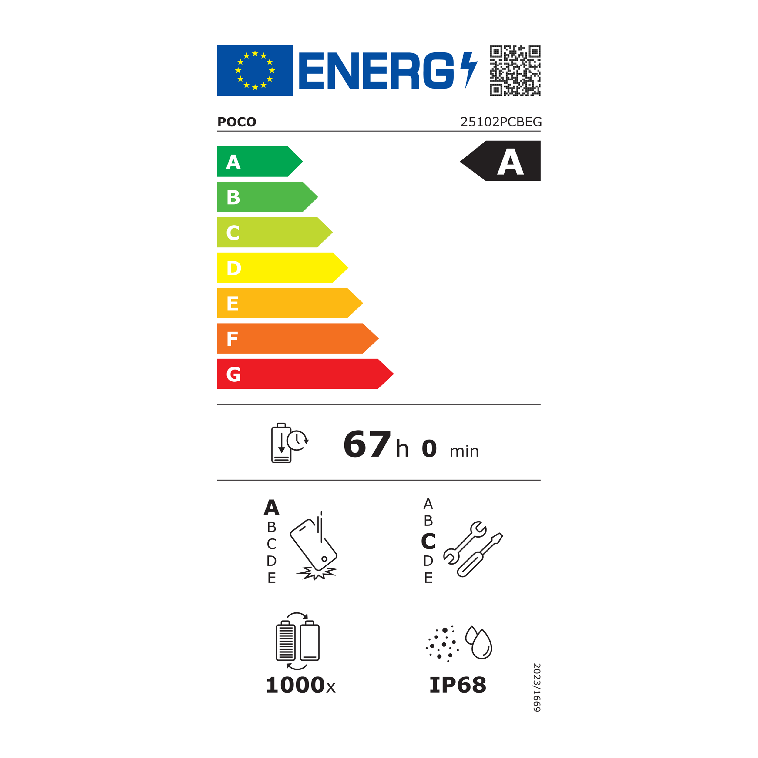 Zdravje baterije ≥80 % po 1.600 polnilnih ciklih je testirano v standardnem okolju v notranjih laboratorijih POCO. Dejanski rezultati se lahko razlikujejo glede na pogoje.