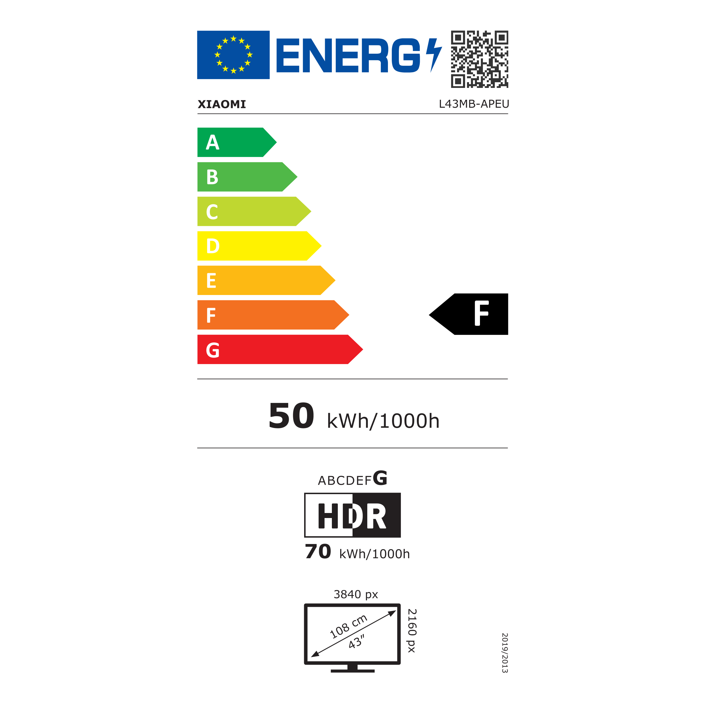 Informacijski list Xiaomi QLED TV A Pro 43 2026: Xiaomi QLED TV A Pro 43 2026